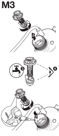1. Drehen Sie den Kopf des Rückschlagventils entgegen den Uhrzeigersinn und entnehmen Sie das Rückschlagventil aus dem Pumpenanschluss.