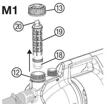 6. Montieren Sie den Filter (19) mit eingebautem Rückschlagventil (18) wieder in umgekehrter Reihenfolge